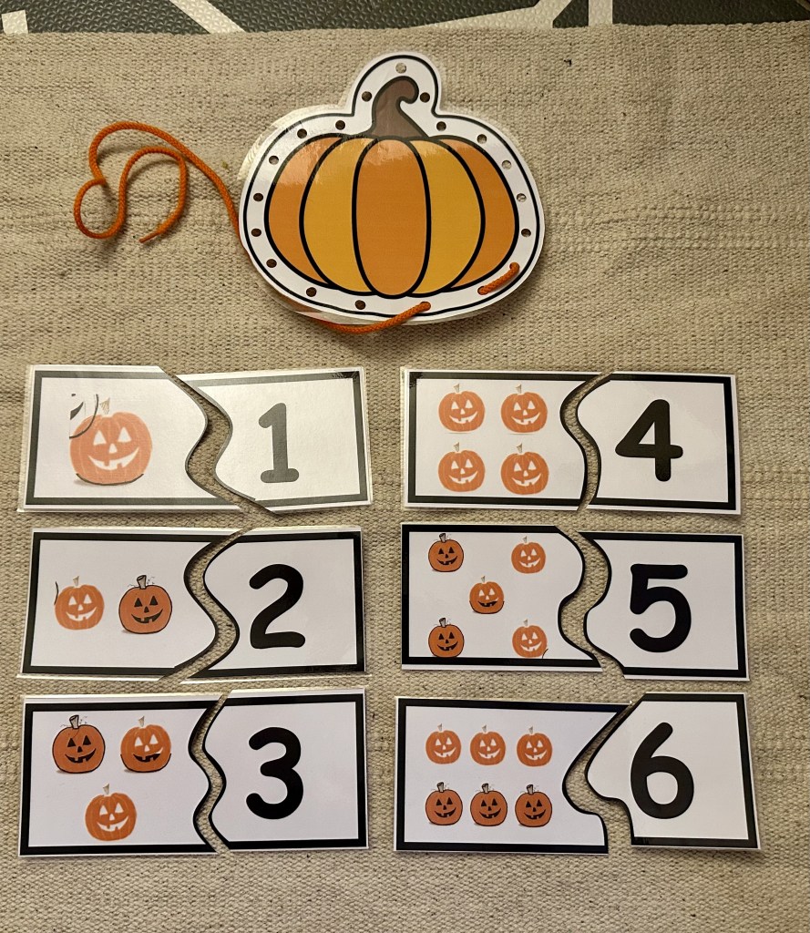 - DIY lacing pumpkin which I found as a free download on the Teachers Pay Teachers website