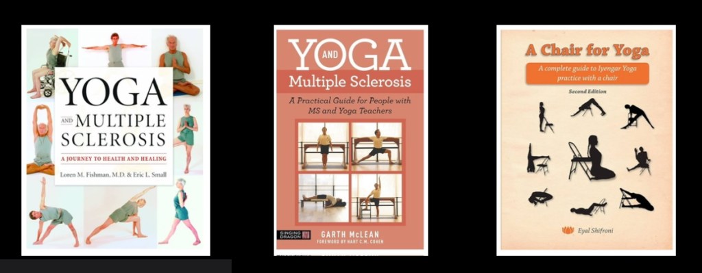 I have three other yoga books at home which I use. These books outline poses and adjustments to help with MS using Iyengar yoga. The method uses props to help people achieve proper alignment and positioning.